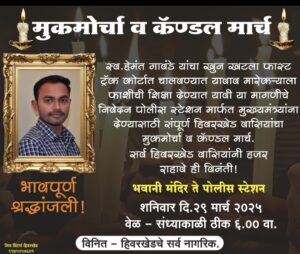29 मार्चला हिवरखेड येथे मुक मोर्चा व कॅन्डल मार्च.