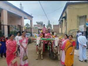 वाजतगाजत बैलगाडीतून मिरवणूक दानापूर शाळा प्रवेशोत्सव.